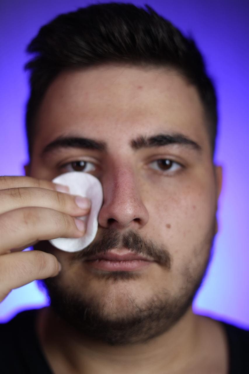 بعد غسل وجهك بالماء والصابون، نظف أنفك والمنطقة المحيطة به لإزالة الأوساخ والزيوت. اعتمادًا على نوع بشرتك، قد تحتاج إلى منظف خالٍ من الزيوت لإزالة الزيوت تمامًا والتأكد من أن الشريط اللاصق يلتصق بشكل صحيح. نوصي عادةً باستخدام الكحول أو منديل مبللة.